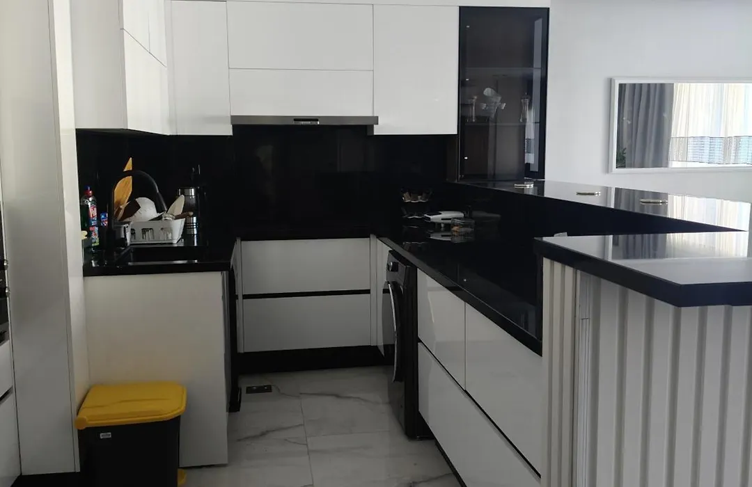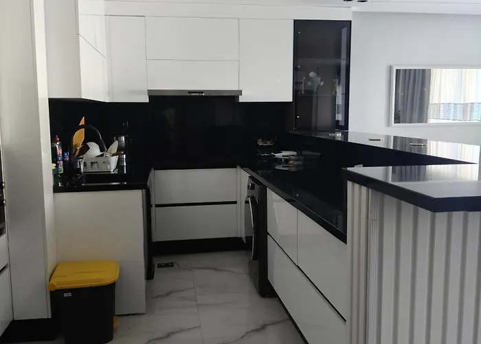 The apartment includes a balcony and a fully equipped kitchen with climate control for utmost comfort.